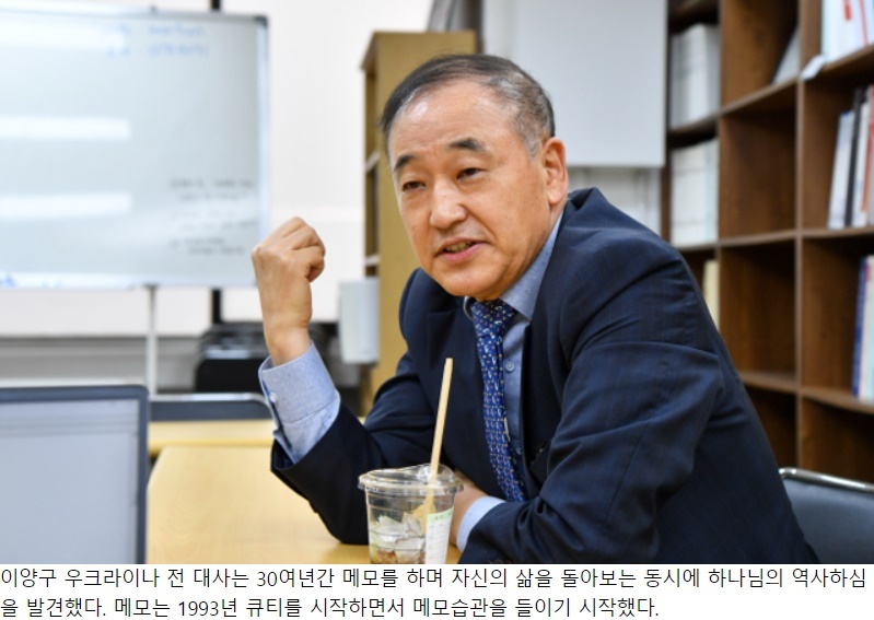 이양구 우크라이나 전 대사는 30여년간 메모를 하며 자신의 삶을 돌아보는 동시에 하나님의 역사하심을 발견했다. 메모는 1993년 큐티를 시작하면서 메모습관을 들이기 시작했다.