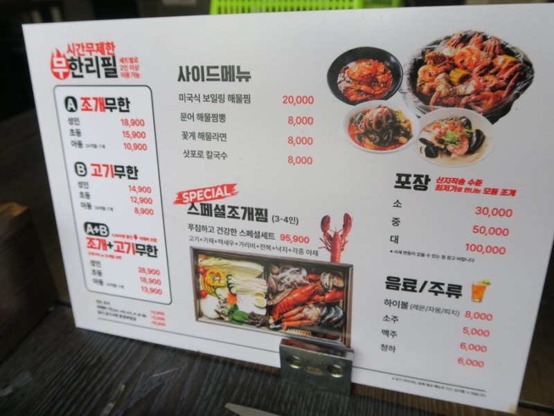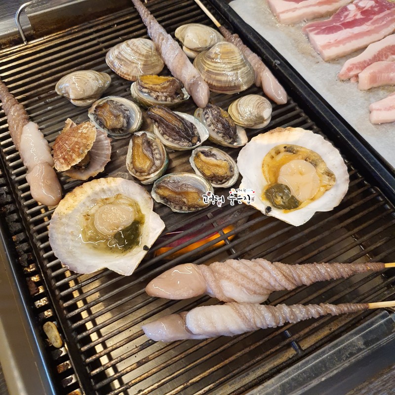 메뉴::조개구이..삼겹살..목살..갈비 등등 무한리필........
