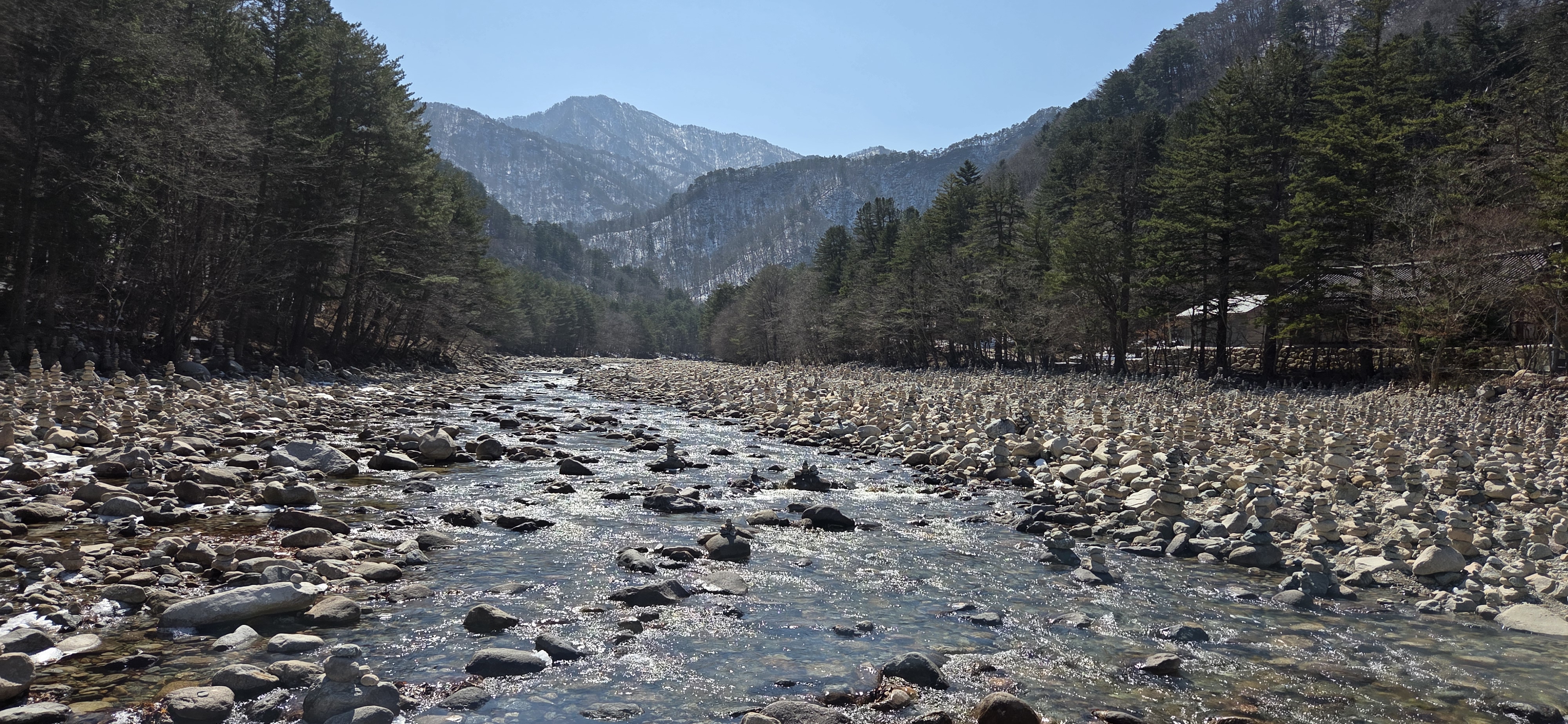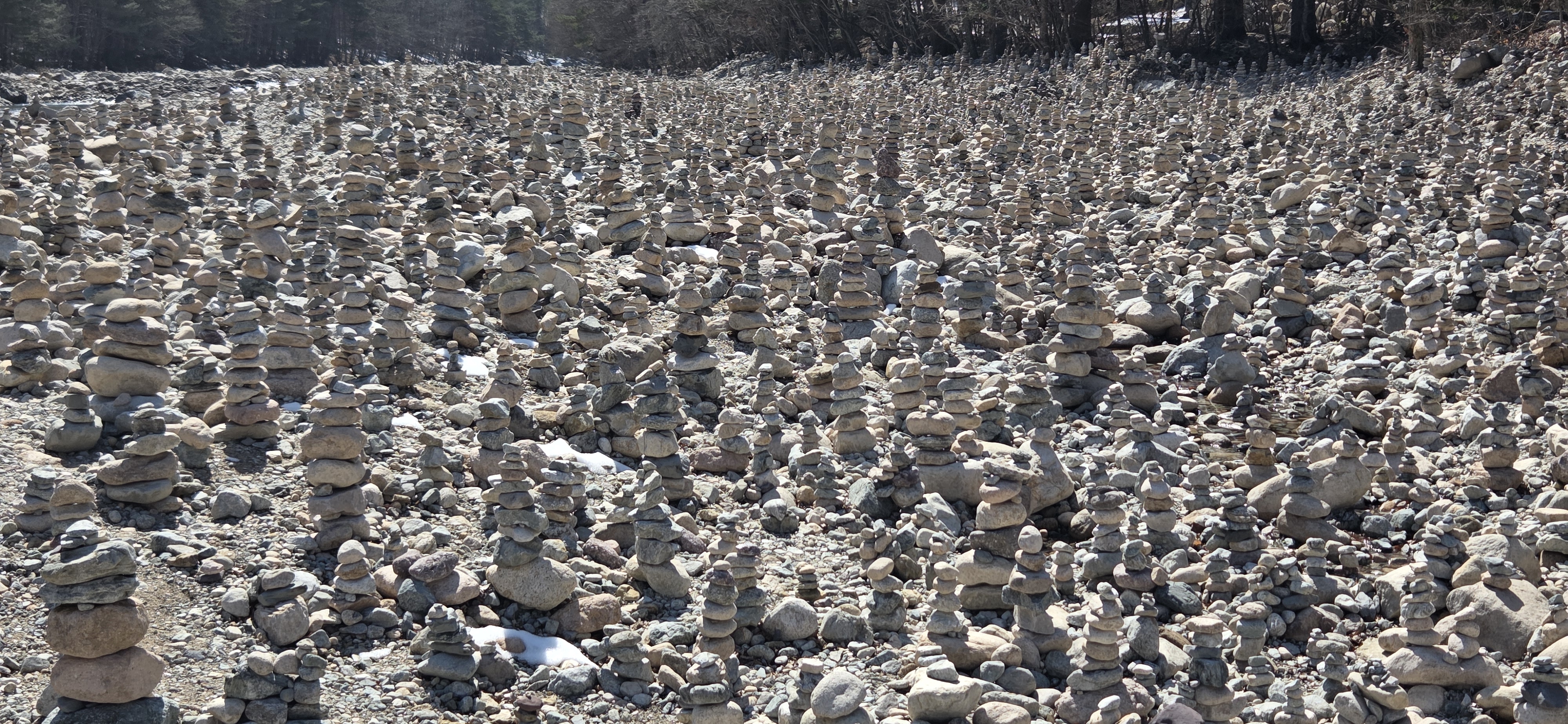 냇가에 수도 없는 돌탑들