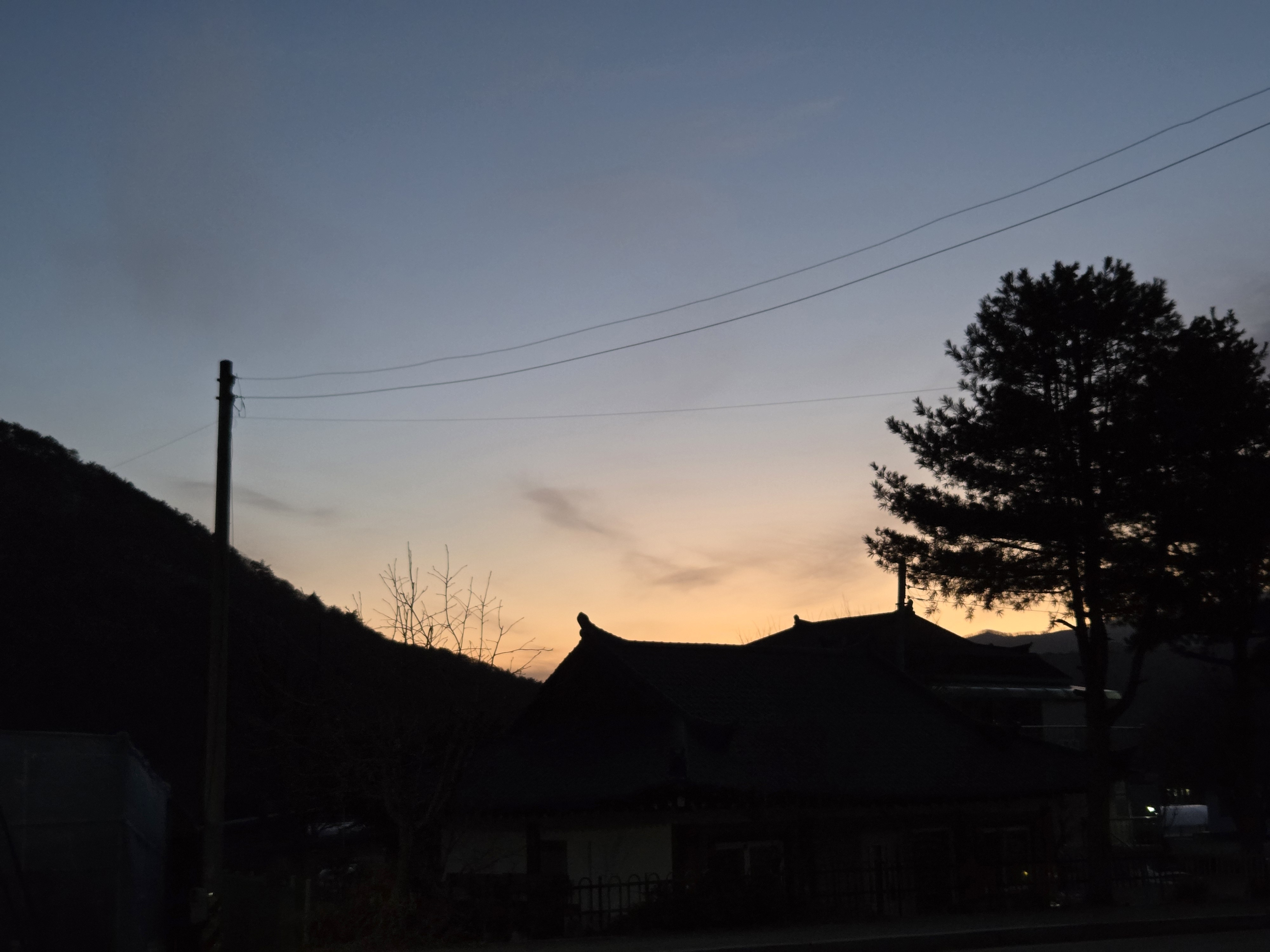 햇볕에 녹아 기와에서 미끄러져 내려와 그늘에 떨어져 얼어버린 눈