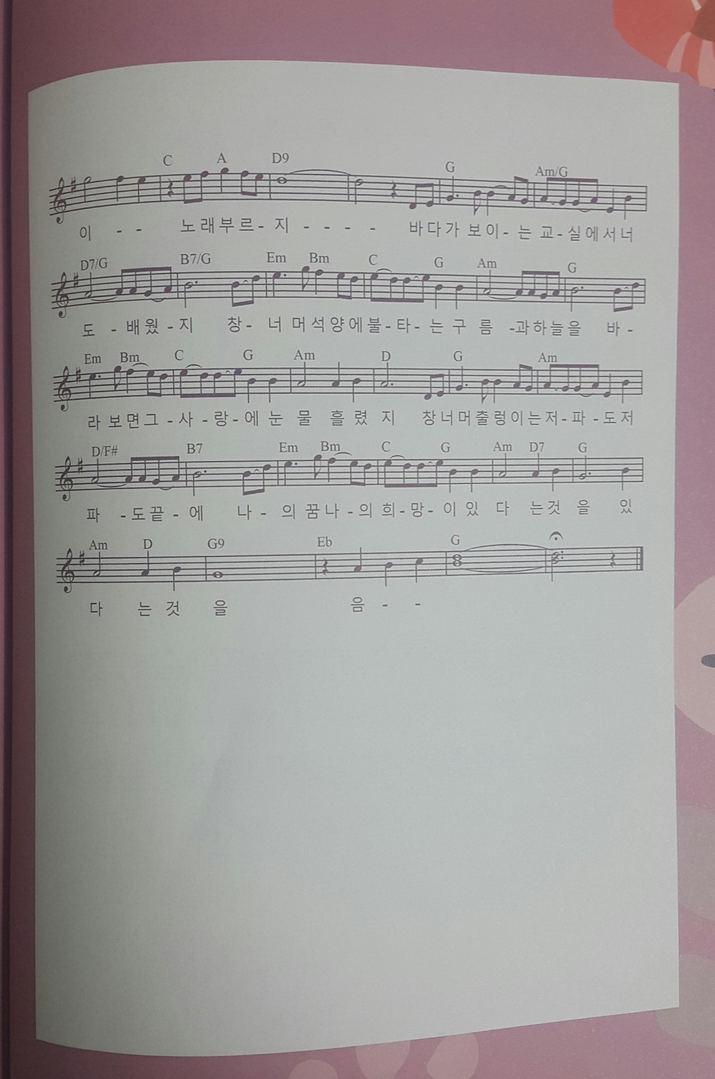 그냥 "노래제목/작사자와 작곡자/가사와 악보가 있는 사진/관련 동영상"을 소개하는 정도가 될 것같습니다.