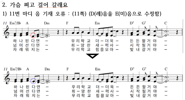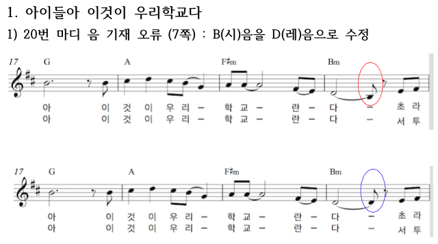 (공지) 우리학교 노래모아 (하나) 책 오류 사항 수정 내용 - 노래책 받은 신 분들은 꼭 이 내용 확인 부탁 드려요