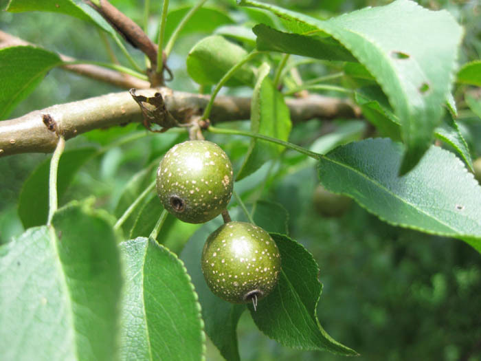 ◉ 둥근 열매는 지금이 2-3cm정도 되며 황적색으로 익는다. 이 열매를 돌배라 한다.