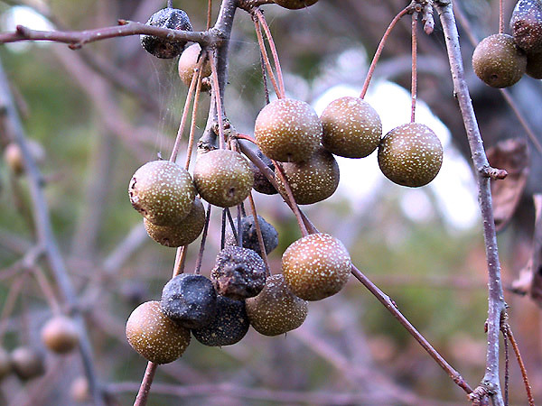 ◉ 열매는 콩처럼 작은 배 모양이며 녹갈색에서 검은색으로 익는다. 맛이 아주 떫다.