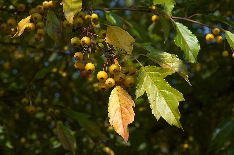 갈잎 작은키나무로 키는 5~10m 정도이며, 나무껍질은 갈색인데 불규칙하게 세로로 갈라져 벗겨진다. 가지는 밤색인데 잔가지는 보랏빛을 띠며 털이 있다. 잎은 어긋나고 타원 모양이며 가장자리에 예리한 톱니가 있다. 긴 가지에서 나온 잎은 잎몸이 3~5개로 갈라진다. 5월에 짧은 가지에서 나온 산형꽃차례에 흰색 꽃이 3~5개씩 모여 핀다. 봉오리를 맺을 때는 분홍색이지만 사과꽃과 비슷한 모양으로 하얗게 핀다. 10월에 열리는 열매는 지름 6~8mm로 작고 둥글며 버찌처럼 긴 열매자루에 달린다. 주로 빨갛게 익지만 노랗게 익기도 한다.