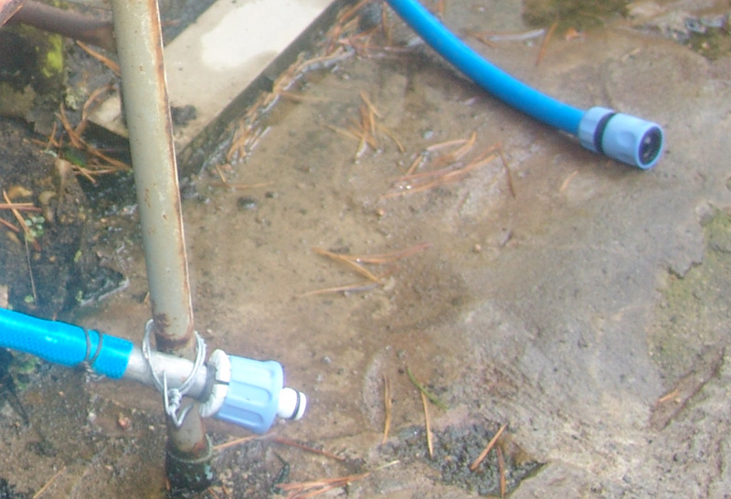 파란색 호스는 이끼가 너무 껴 결국은 검정색 호스로 교체(16밀리 내압호스 20미터 1만원)