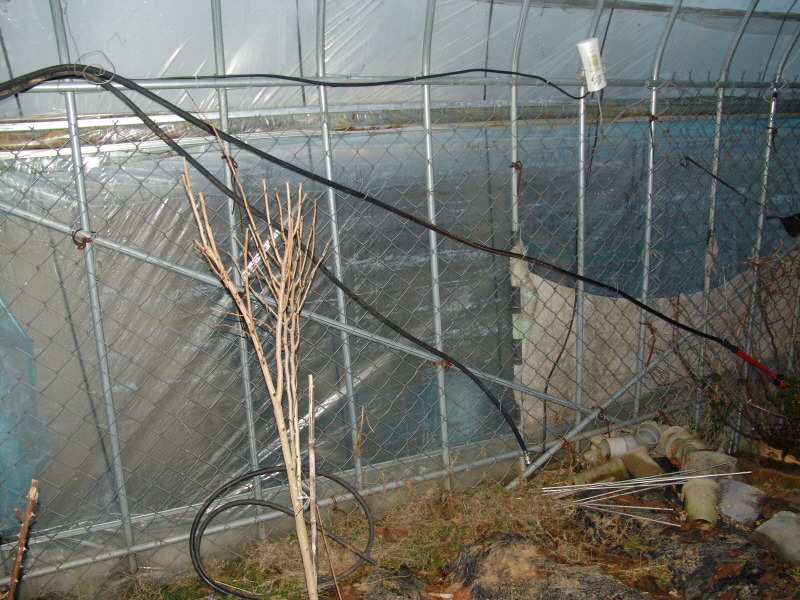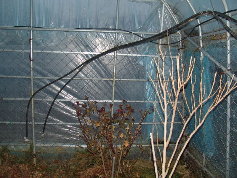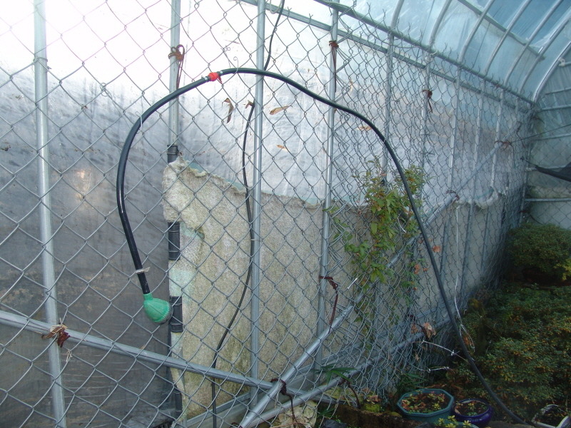 대부분의 호스를 하우스 파이프에 역 V자 형태로 고정시켜 놓으면