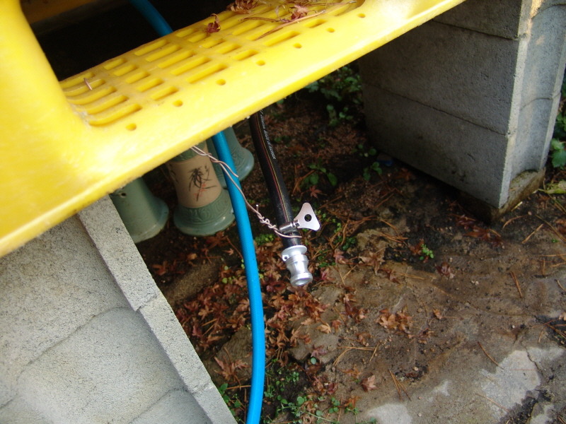 관수 후 원터치 호스를 분리 시켜 놓으면 물이 저절로 빠집니다.