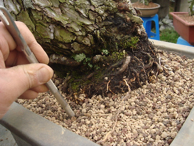 가장 가는 긴 송곳으로 잔뿌리를 펴 내리면서 정리중..