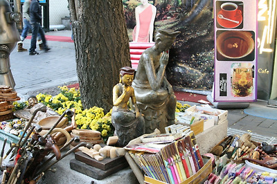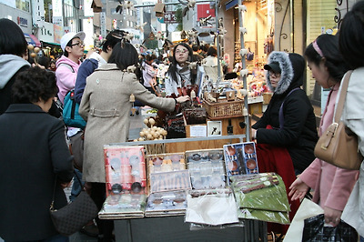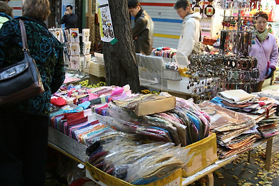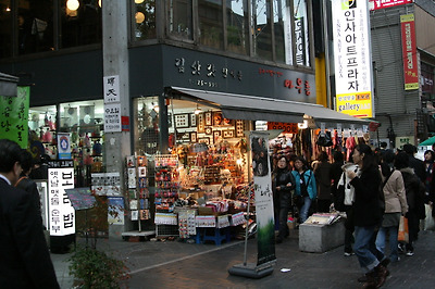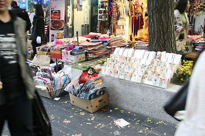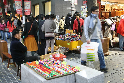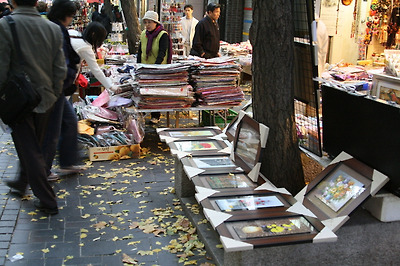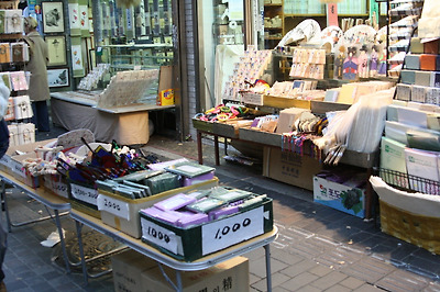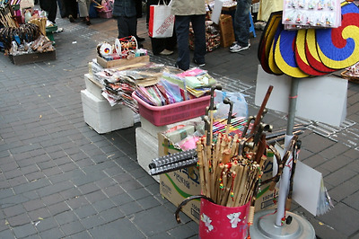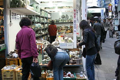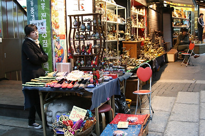붓, 먹, 벼루, 자기류, 골동품류, 전래되어 온 생활용품 거기다 젊은이들이 길에서 간식을 즐기기도 한다.