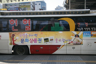 헌혈차도 요즘 디자인을 아주 좋게 해서 젊은이들의 기호를 맞추고 있다.