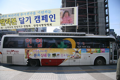 안양역앞에는 일요일인데도 한마음혈액원에서 열심히 일을 하고 있고 젊은 이들은 사랑의 피를 나누어 주기 위해 헌혈차에 열심히 오르고 있다.