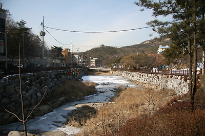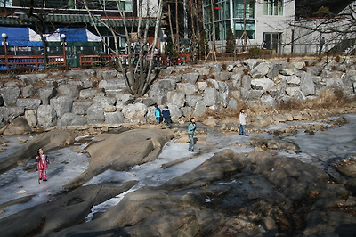 하천도 정비하여 아이들이 여름에 수영을 즐기고 겨울에는 얼움이 얼어서 거기서 놀기도 한다.