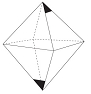 왼쪽 그림과 같이 두 개의 표면 일부를 색칠한 정8면체의 전개도로서 바른 것은 어느 것인가? |