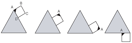 한 변의 길이가 3인 정삼각형과 한 변의 길이가 1인 정사각형 ABCD가 있다. 그림과 같이 고정된 정삼각형 둘레를 따라 시계방향으로 정사각형 ABCD를 미끄러지지 않게 회전시키면서 이동시킨다. |
