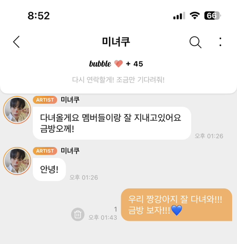 민혁이 버블에 마지막에 쓴 글에 1이 없어졌어요 ㅜㅜ