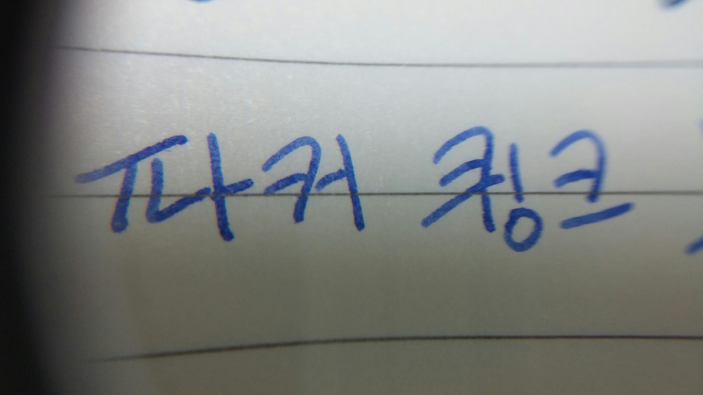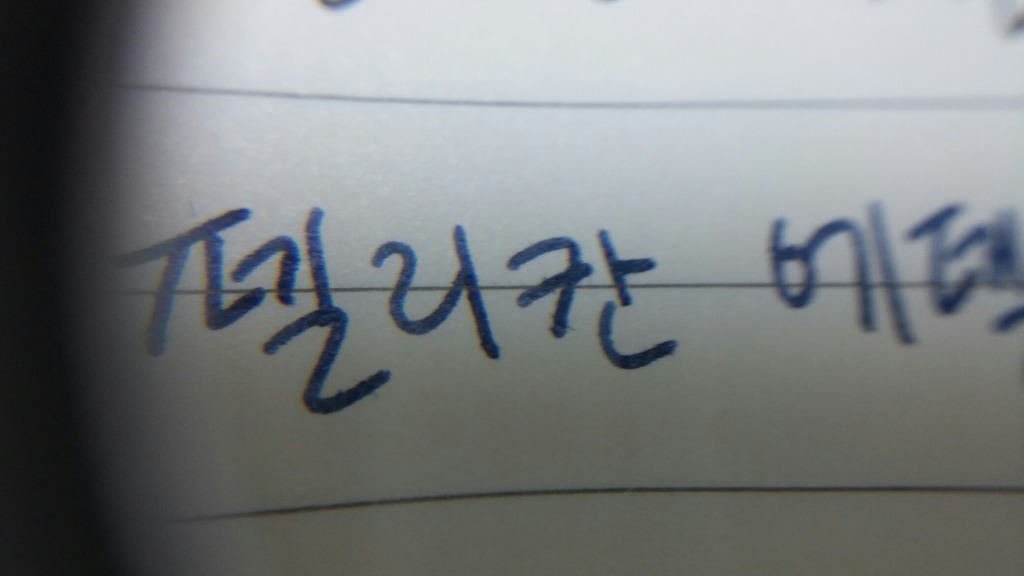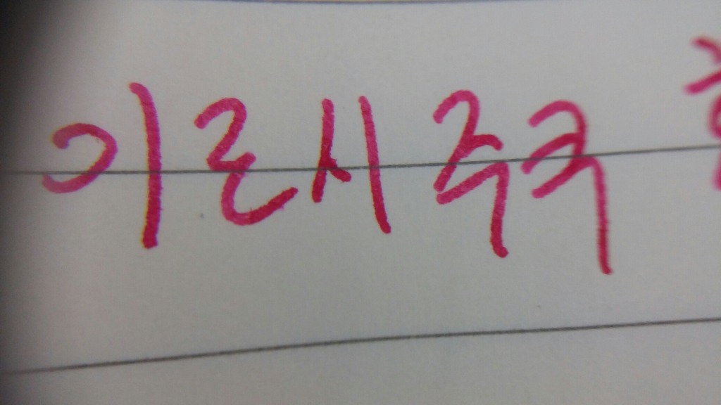 1탄에서는 라미 블랙의 흐름이 넘쳐 보였는데 이번에 2탄을 적으면서 다시 보니 넘치는 흐름 정도는 아닌가 봅니다. 적당한 굵기의 펜에 쓴다면 안정적이고 깔끔한 글씨를 쓸 수 있을거 같습니다.
