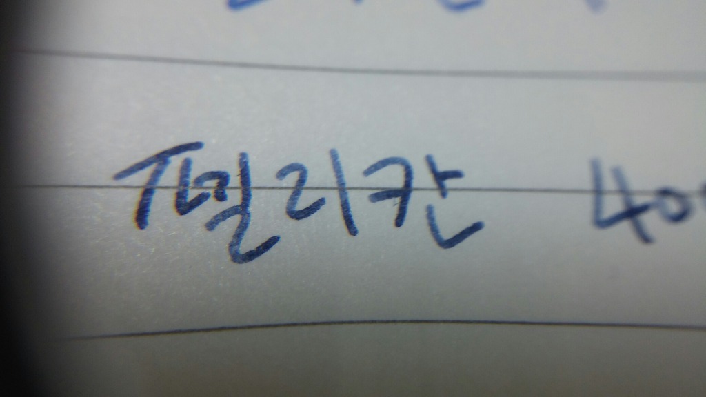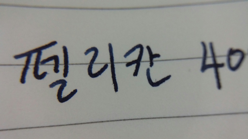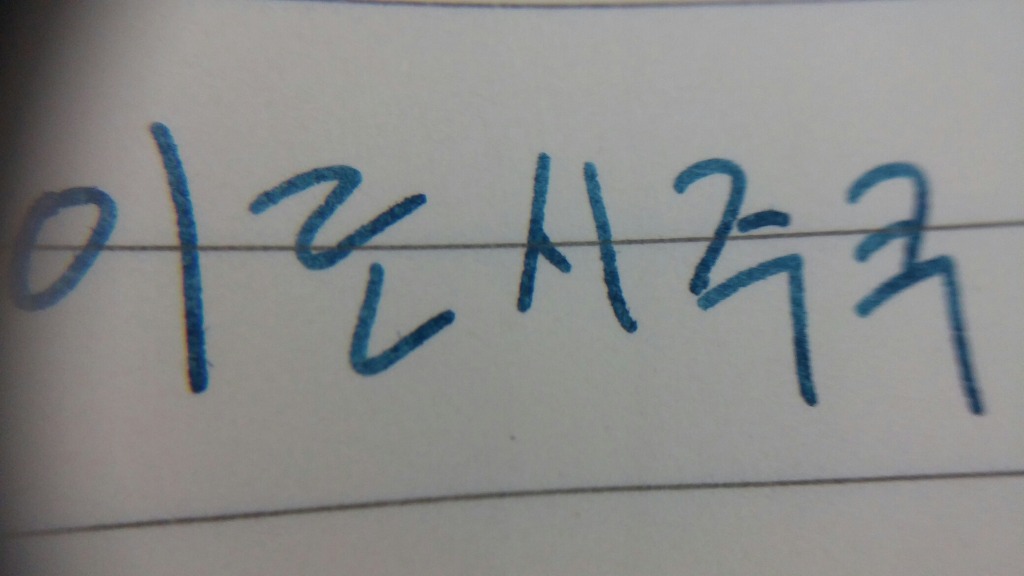 오래된 잉크라 그런지 신형 보단 진득합니다. 블루블랙인테 오히려 블랙에 가까운 색이 나왔네요. 아래에 신형과 비교해 보면 차이점이 확연하게 보입니다. 농담이 있긴 하지만 많진 않습니다. '오래된 잉크부터 빨리 쓰자' 해서 최근 몇일간 써봤는데 흐름이 답답합니다.. 신형 4001보다 유독 심한게 아마 오래되서 그런거 같습니다. 오늘 그 펜 세척하고 다른 잉크 넣으려구요^^.