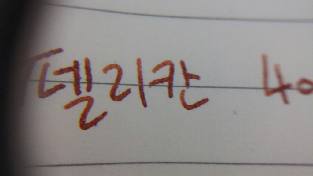 유명한 큉크입니다. 흐름이 좋다는 평에 비해 실번짐이 없습니다. 괜히 최고의 잉크라는 수식어가 붙는게 아니네요. 흐름 좋은 잉크인 만큼 농담이 예쁘게 집니다.