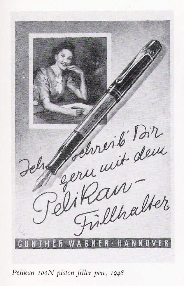 군테 바그너Gunther Wagner가 회사를 인수 후 100주년째인 1938년 ‘펠리칸’은 모델 ‘100N’과 같은 새로운 디자인을 만들 수 있는 체제로 갖췄다. 회사의 로고를 ‘네 마리의 새끼’에서 ‘두 마리의 새끼’로 바꿨다. 그리고 경제적인 펜인 ‘Rappen’은 ‘Ibis’라고 불리는 다른 경제적인 모델로 대체하였다.
