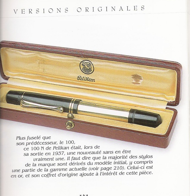 이름은 '펠리칸 만년필(The Pelikan Fountain Pen)'이다. 시판 즉시 이목을 끌었다. 만년필이라면 검정색으로 알던 시절에는 대담한 색상의 만년필이었다. 최신 재질인 초록색 셀룰로이드의 몸통(배럴)에 새롭게 디자인된 현대식 캡이 돋보였다.