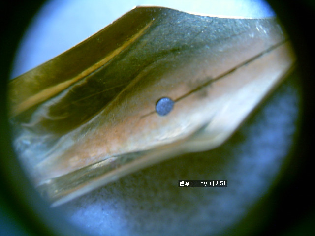 확대된 사진 :하트홀 아래는 약 1mm의 크랙이 보입니다.