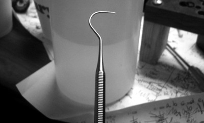 가는 막대기를 이용해 컵 속으로 밀어넣습니다.