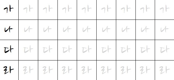 인쇄하시어 글자 연습을 하시면 될 듯합니다.