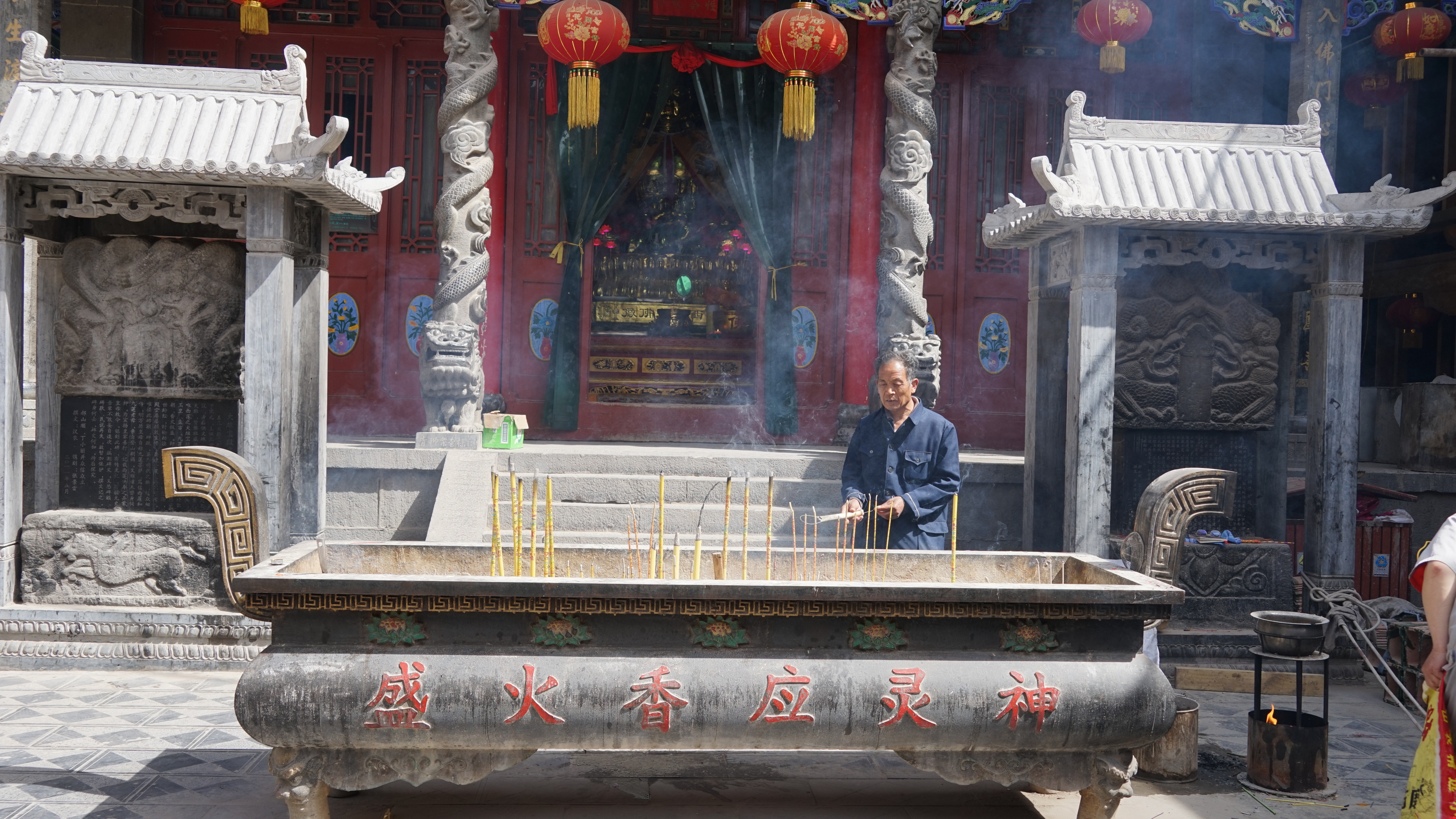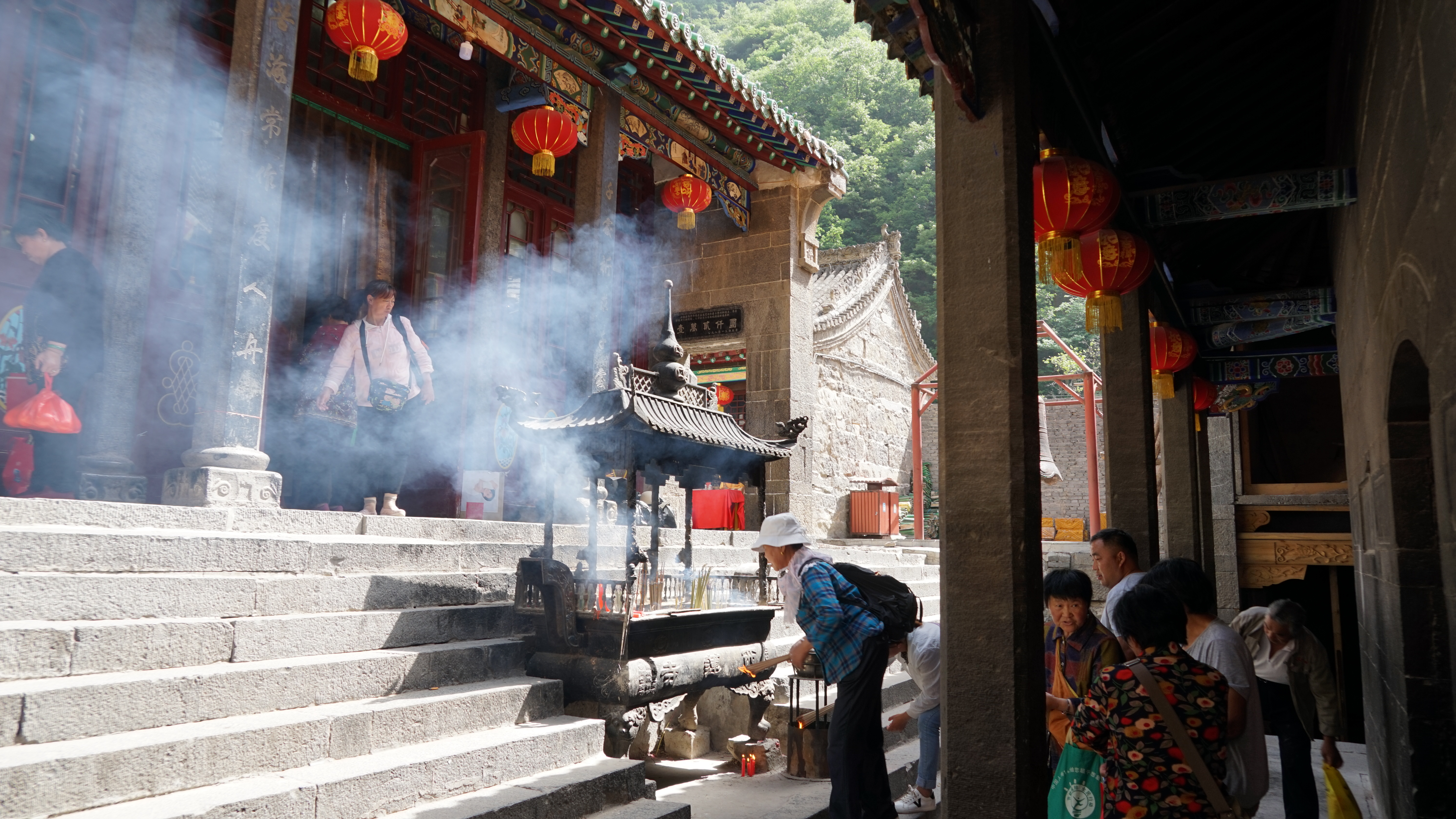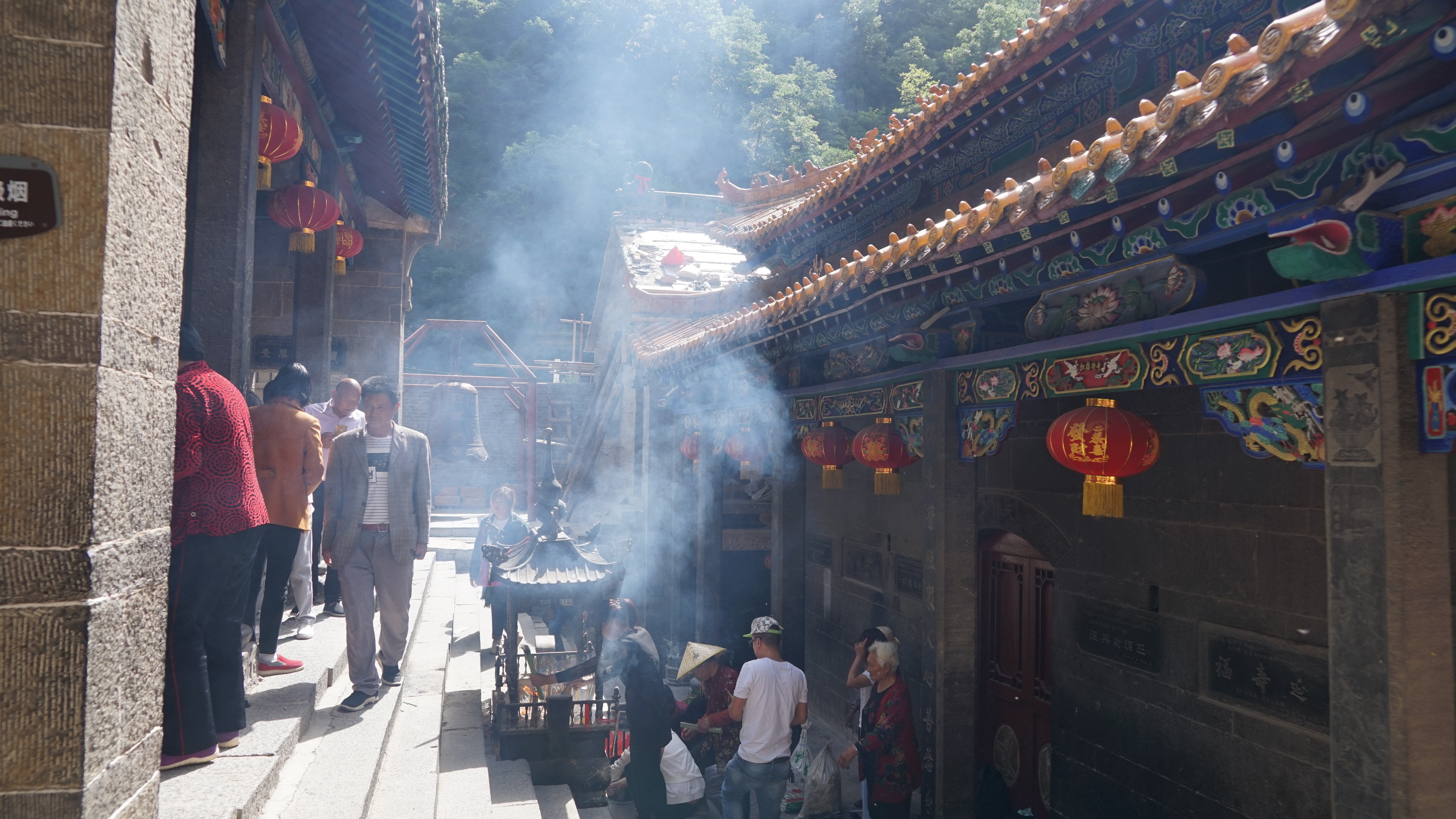 중국의 어느 절에나 마찬가지로 이곳도 복을 비는 사람들의 향을 태우는 연기가 마당에 자욱하고 절의 내부와 형태도 사찰 본