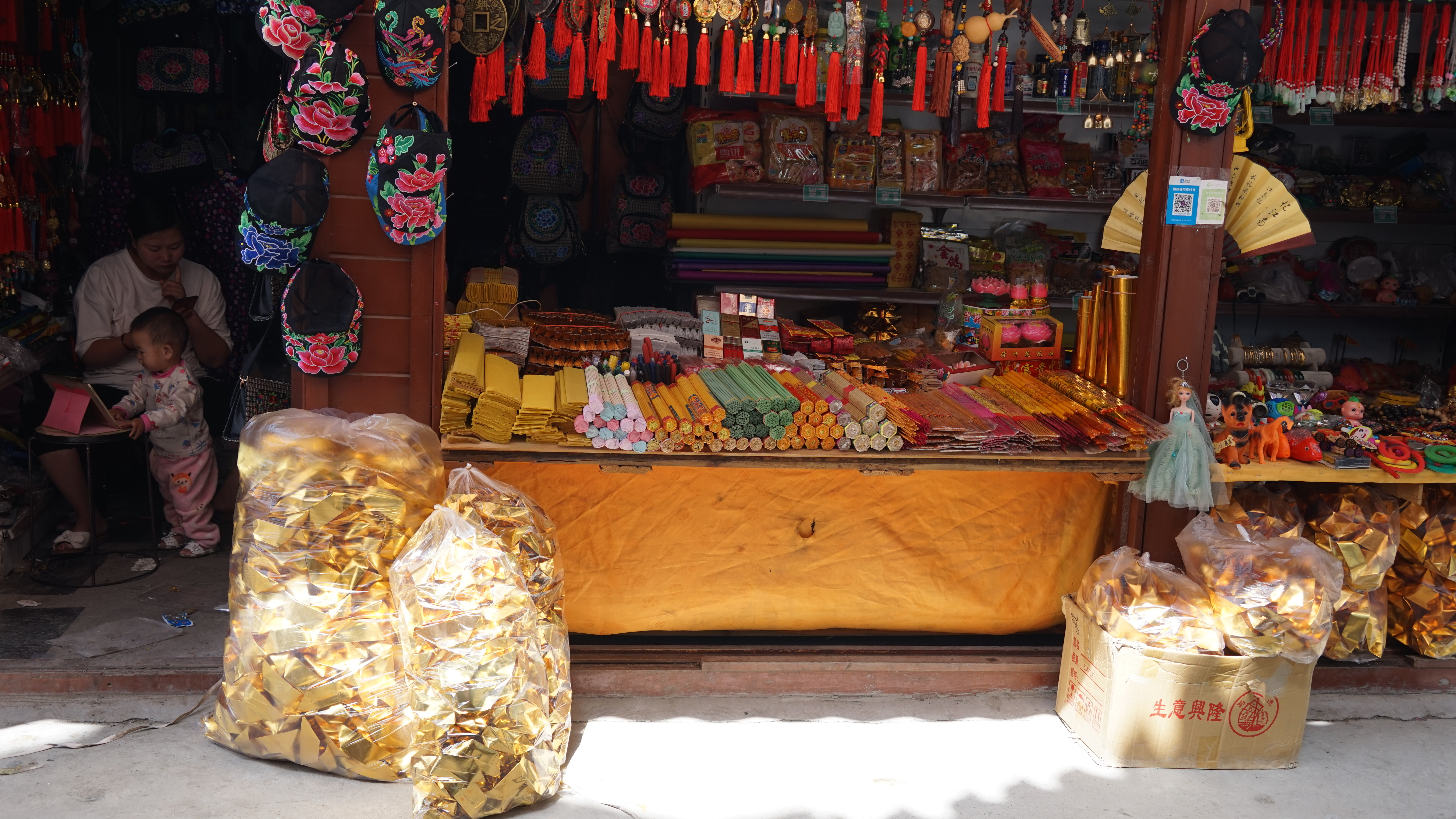 참배객들과 관광객들에게 향이나 종이 금덩이 그리고 음식물들을 파는 가게