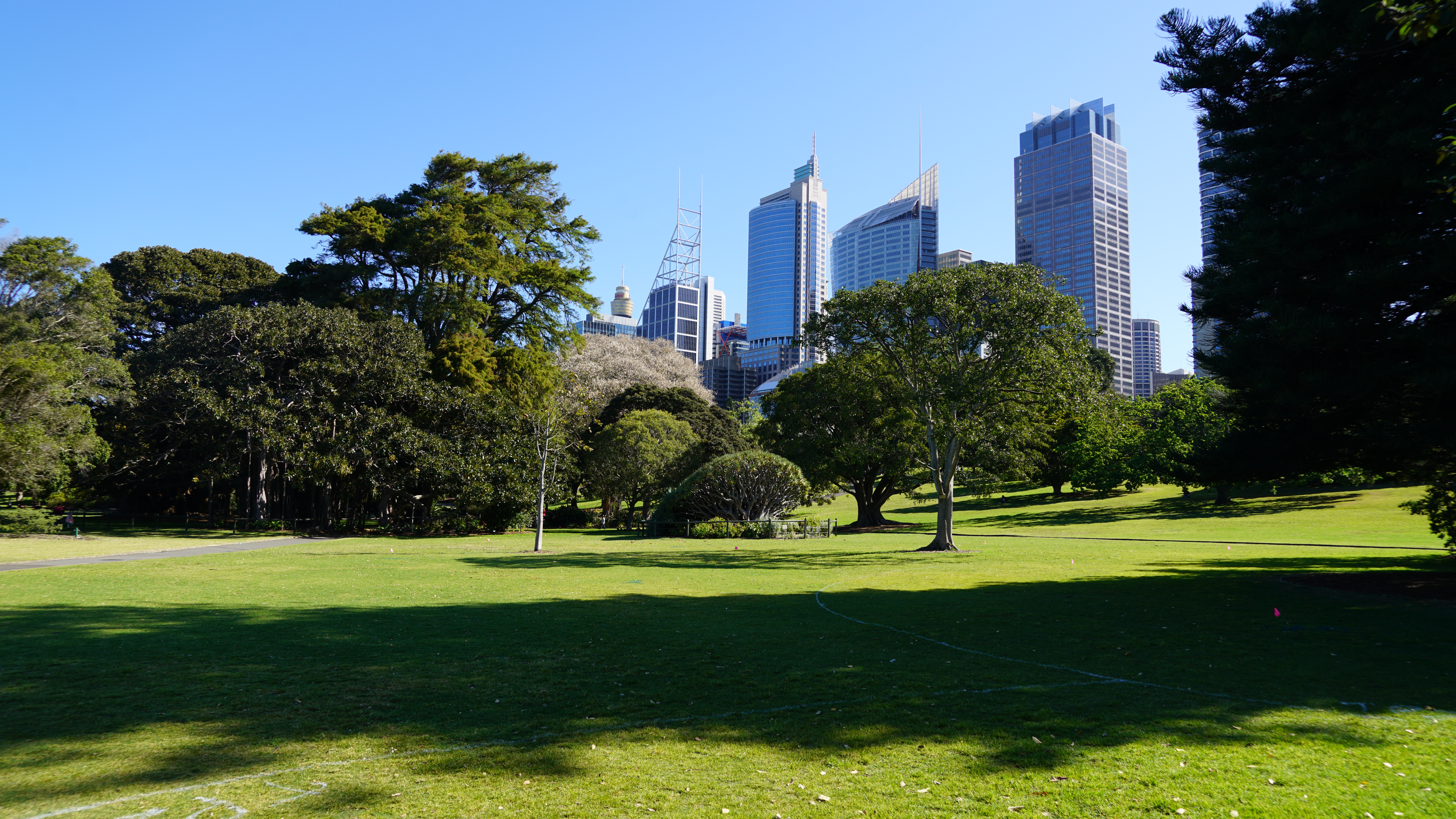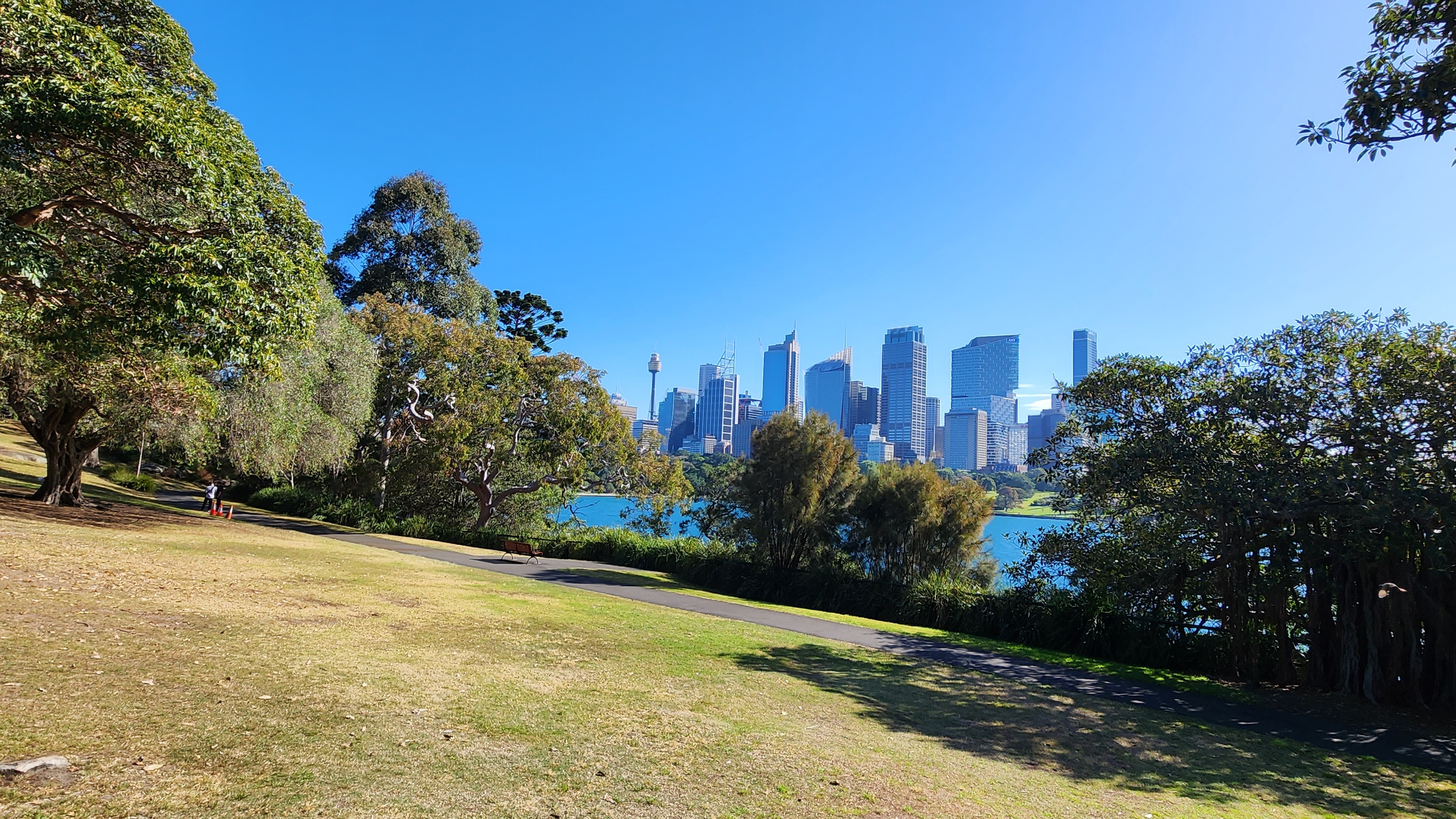 나무 뒤에 보이는 빌딩들이 있는 곳이 시드니의 중심가이다.