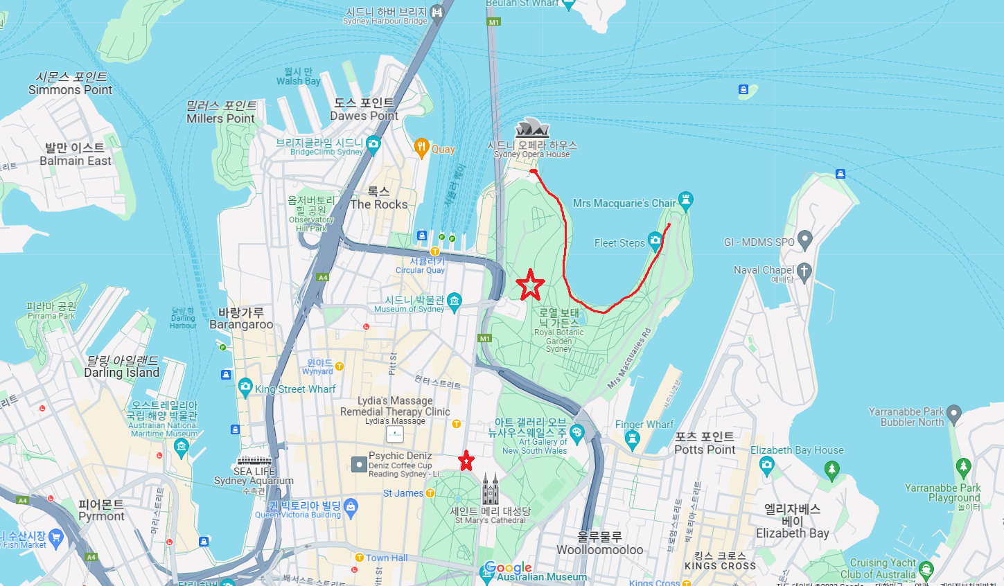 좌측의 바다는 포트 잭슨만으로 오패라하우스가 있는 곳이다.