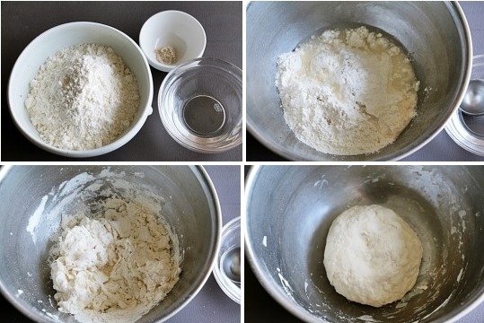 밀가루를 볼에 넣고 물과 소금을 넣고