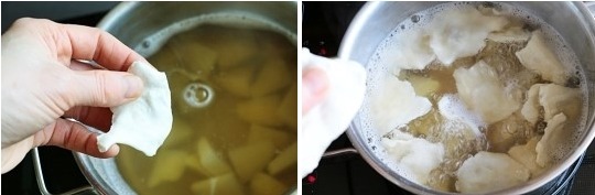 감자를 먼저 넣고 끓이면서
