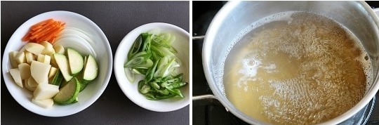 분량의 멸치다시마육수를 준비한다