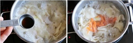 수제비 반죽을 넣어야 반죽이 쫄깃하게 익는답니다