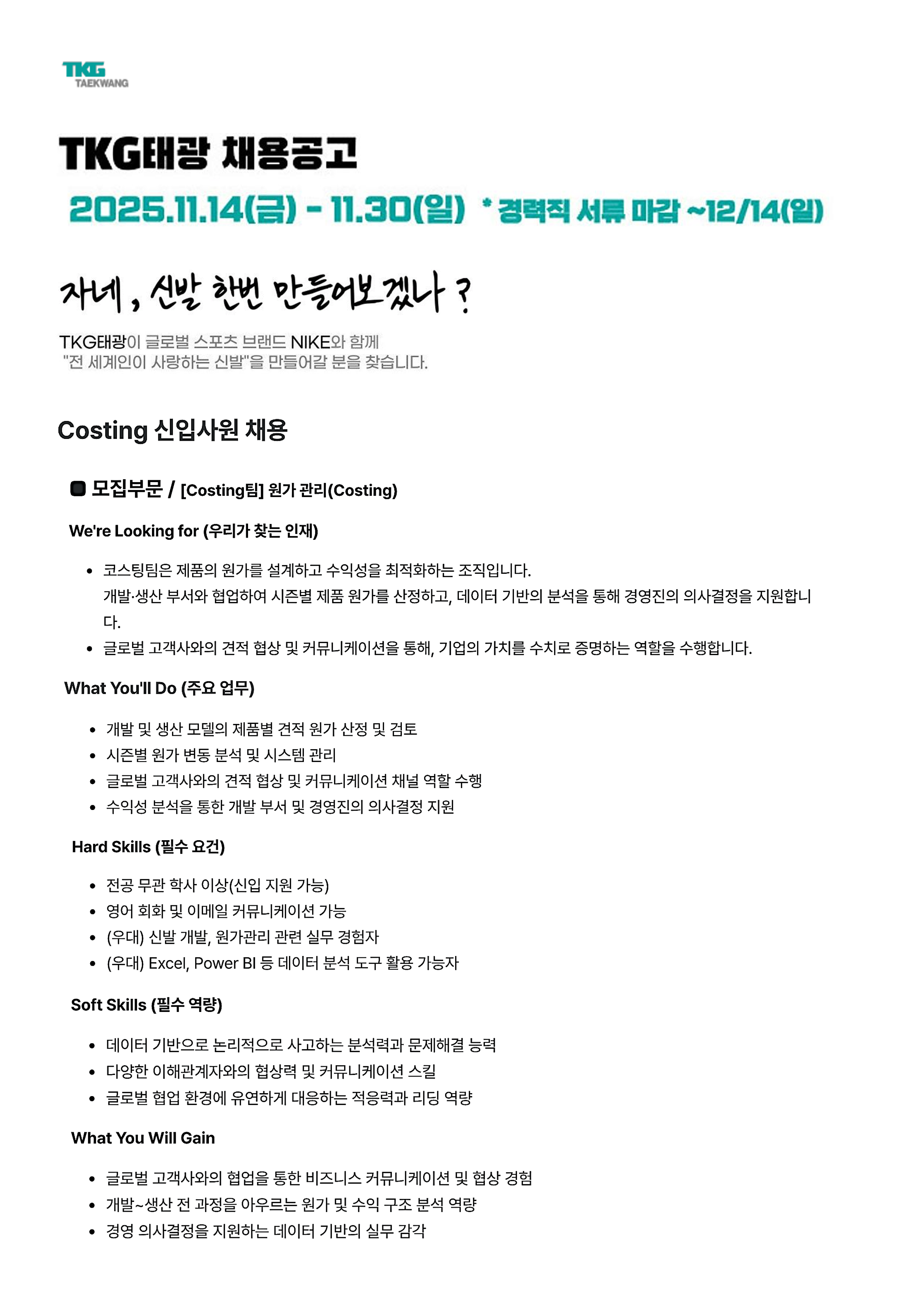 2. 채용포털 링크: TKG태광(주) 채용 | [PCC 개발센터] Costing 신입사원 채용