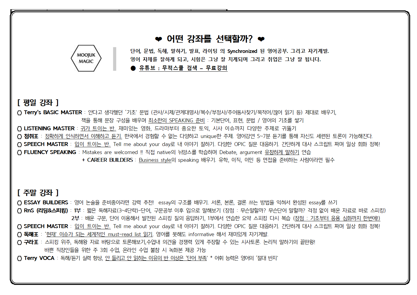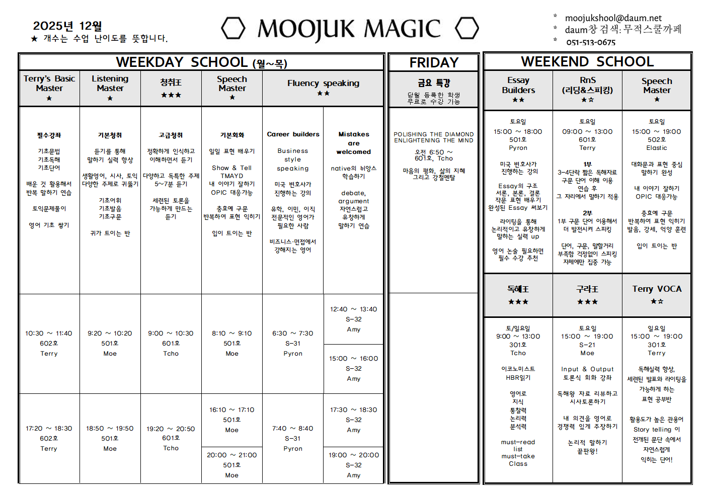 ※ 매주 금요일은 새벽강의(06:50~)만 진행되며, 상담이 불가합니다.