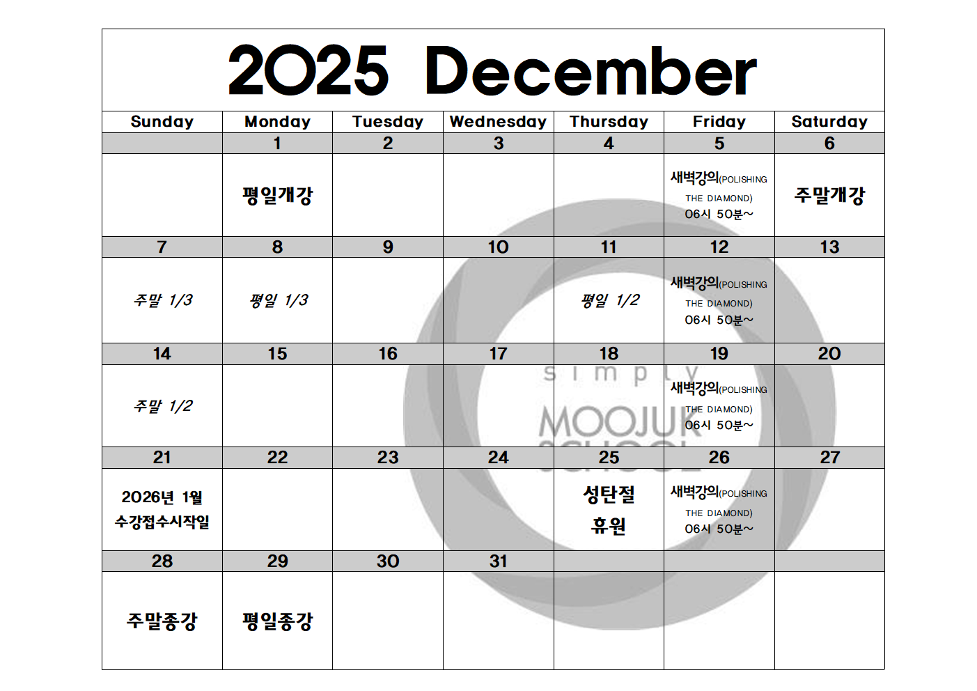2026년 1월 수강접수는 12월 21일 일요일부터입니다.