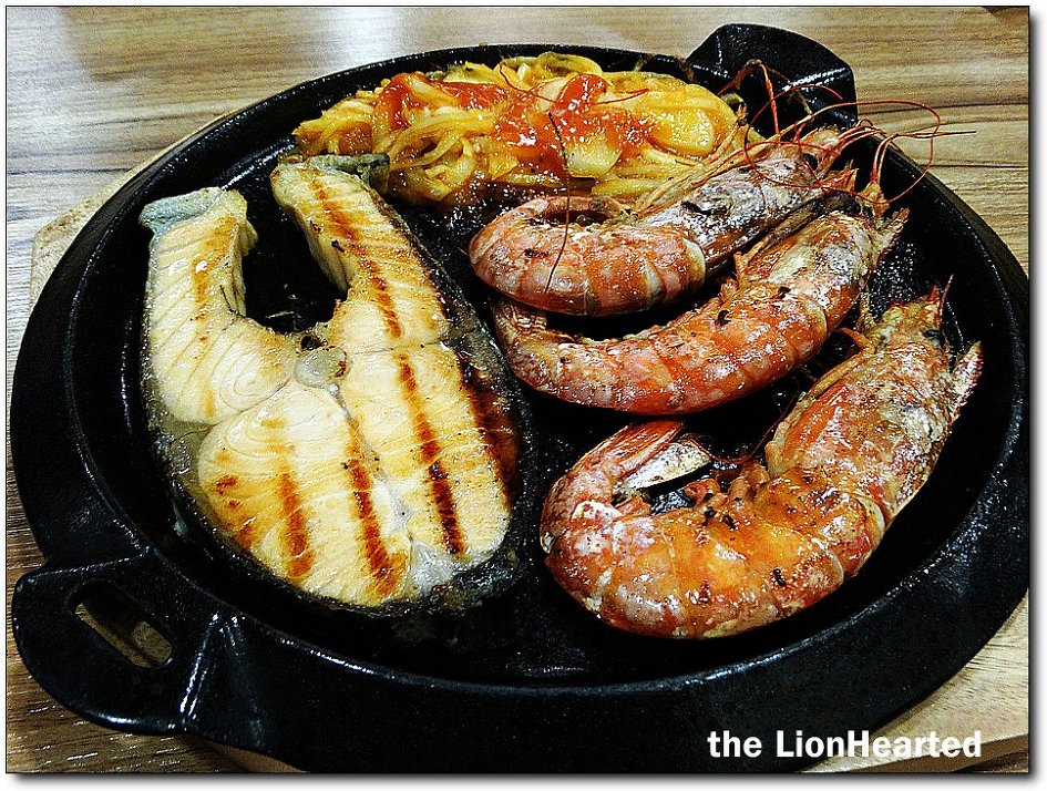 칠레산 연어와 아르헨티나 자연산 새우를 버터에 구워 낸다,