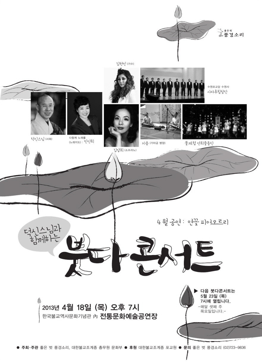 [스크랩] [음악회]덕신 스님과 함께하는 붓다콘서트가 열립니다. 작성자강주현(重岩)|작성시간13.04.12|조회수19 목록 댓글 0 글자크기 작게가 글자크기 크게가 함께 하시어 찬불가와 다양한 음악의 향연을 누리시길 바랍니다. 첨부파일첨부된 파일이 2개 있습니다. jpg 파일 budda04-1.jpg 다운로드 jpg 파일 budda04-1.jpg 다운로드 다음검색 스크랩 원문 : 찬불가 사랑 현재 게시글 추가 기능 열기 북마크 공유하기 신고 센터로 신고 댓글 댓글 0 댓글쓰기 답글쓰기 댓글 리스트