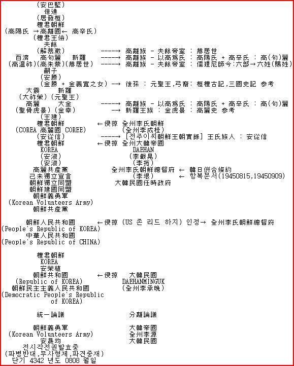 단군조선(남 코리아) : 朝鮮共和國 Republic of Korea ←(국토침해) DAEHAN(대한민국 전주이승만) + 주한미군 + 한미연합사