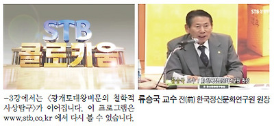 물론 편협한 국수주의도 큰 문제지만 역사의 혼을 잃어버리는 일은 더 큰 문제입니다. 그런 의미에서 오늘 이 자리는 상당히 의미있고 뜻깊은 자리라고 생각됩니다. 류승국 교수님을 모시고「 광개토태왕 비문을 통해서 본 한국 고대사상의 원형 탐구」라는 제목으로 말씀을 듣겠습니다. -STB
