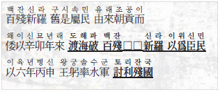 백잔신라구시속민유래조공이왜이신묘연래도해파백잔○○신라이위신민