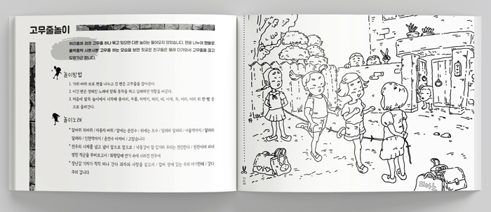 아이들에게 컴퓨터 게임이 아닌 친구들, 가족들과 몸으로 부대끼며 즐기는 놀이를 알려주고 싶은 학부모들을 위해 자세한 놀이방법이 컬러링도안과 함께 소개되어있습니다.