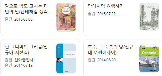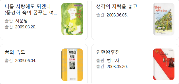 1970년 《전규태전작집(全圭泰全作集)》 10권 발행. 세계기행 시화집