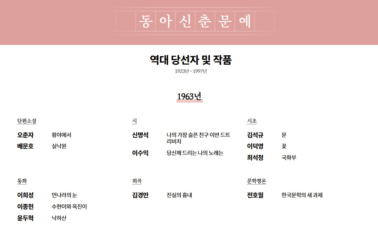 출처 : 동아신춘문예 역대 당선자 https://sinchoon.donga.com/List?m=record&c=1960