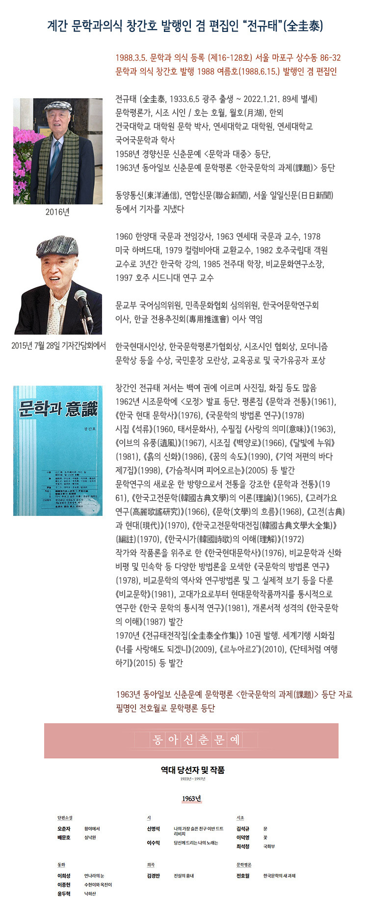 1963년 동아일보 신춘문예 문학평론 <한국문학의 과제(課題)> 등단