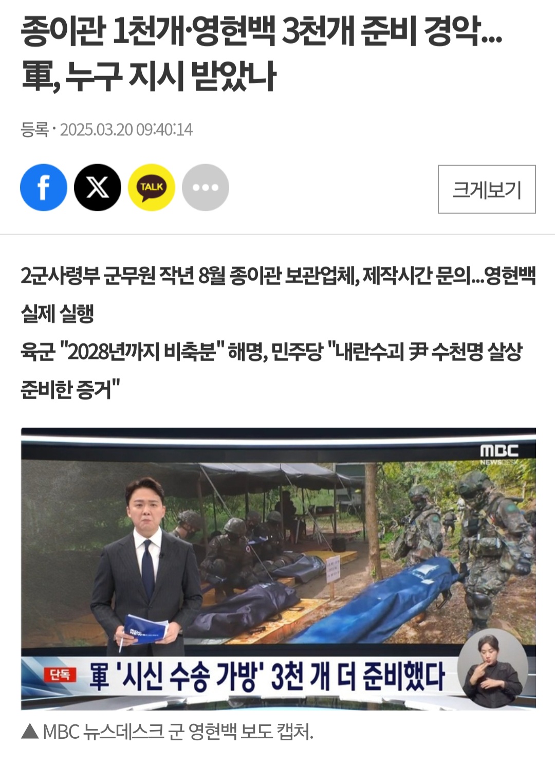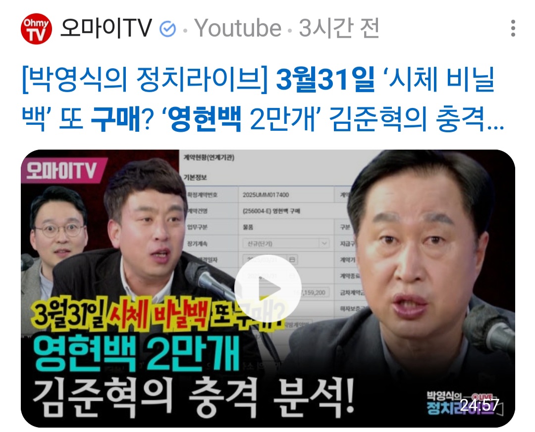 3월 31일 '시체 비닐백 ' 또 구매? 영헌백 2만개...누구 지시 받았나...2차 계엄 우려 증폭 작성자달그리메(대구)|작성시간25.04.01|조회수226 목록 댓글 2 글자크기 작게가 글자크기 크게가 https://youtu.be/TTLSFN11C2c?si=YqSdNPf4DCFZnq2- https://naver.me/5GpWhvEG https://naver.me/GFBtFEcF https://youtu.be/TOGaz3aCkq4 다음검색 현재 게시글 추가 기능 열기 북마크 공유하기 신고 센터로 신고 댓글 댓글 2 댓글쓰기 답글쓰기 댓글 리스트 작성자영남사랑이(울산) | 작성시간 25.04.01 저것들은 윤석열이기소될것으로 알고제2계엄으로 많은각계 인사들 죽일 참인가보네ㅠㅠ그래서 파면은 꼭여야 답댓글 작성자달그리메(대구) 작성자 본인 여부 작성자 | 작성시간 25.04.01 그렇지요윤석열이 기각되면2차 계엄은 불을 보듯 합니다아무래도거기에 대비를 한 듯요윤석열이 구속 취소 되고2주 후 3000개 구매어제 또 대량 구매 작전... 댓글 전체보기