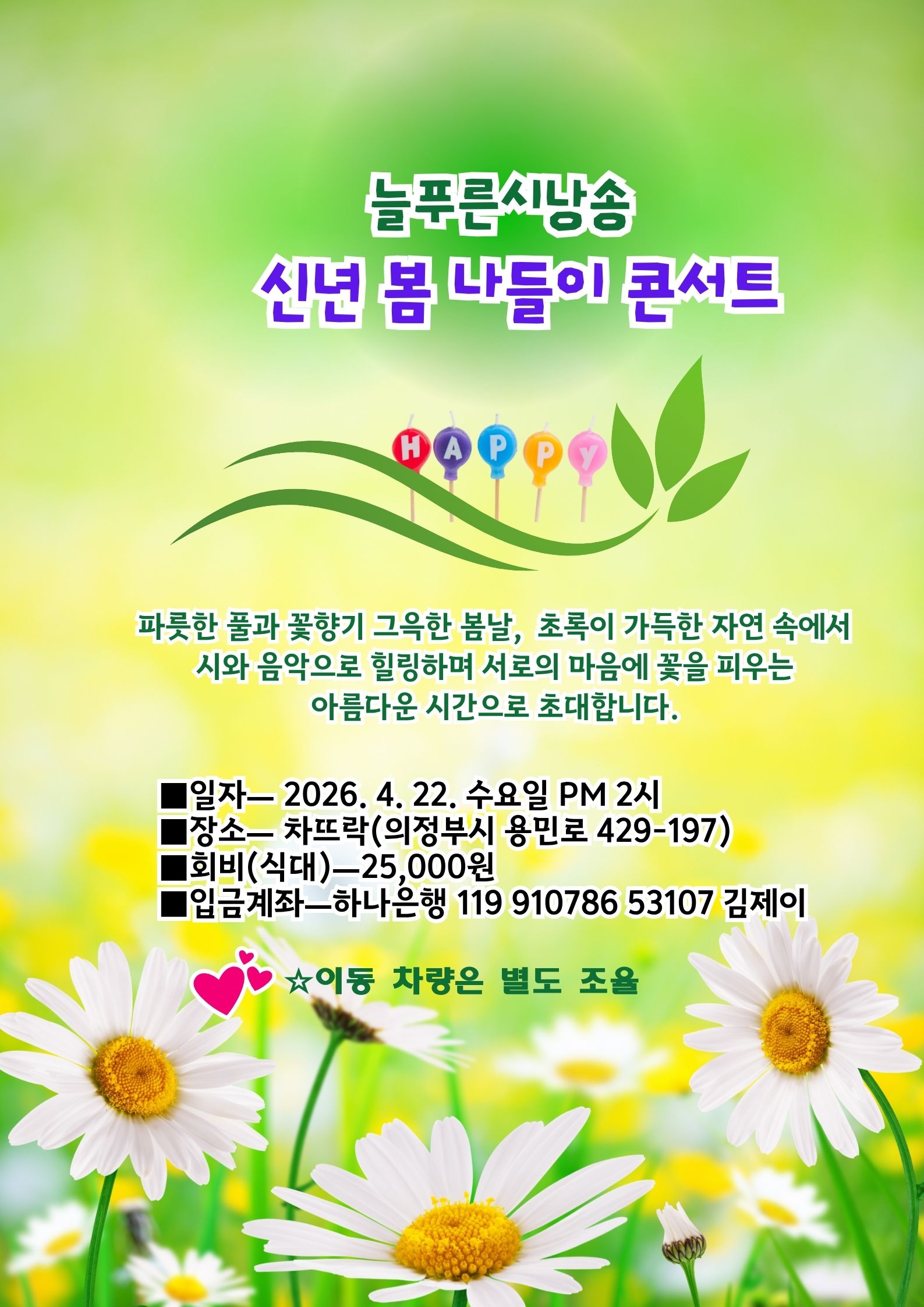 이번 콘서트는 단순한 공연을 넘어, 시와 낭송이 사람들의 마음을 잇는 다리라는 사실을 다시금 깨닫게 해주었습니다. 봄날의 나들이처럼 따뜻하고 아름다운 시간이었으며, 그 기억은 오래도록 제 마음속에 남을 것입니다.